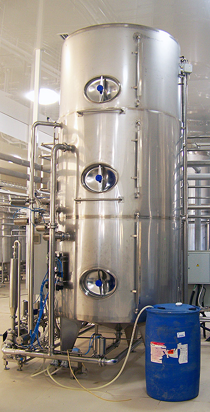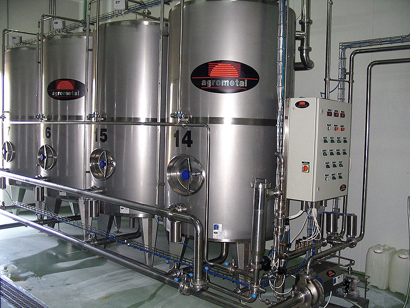 Система центральной мойки ЦИП фирмы Agrometal работает в автоматическом режиме. Алгоритм и временные параметры процесса мойки оборудования программируются в зависимости от степени загрязненности технологического оборудования. Концентрация моющих растворов устанавливается технологом.